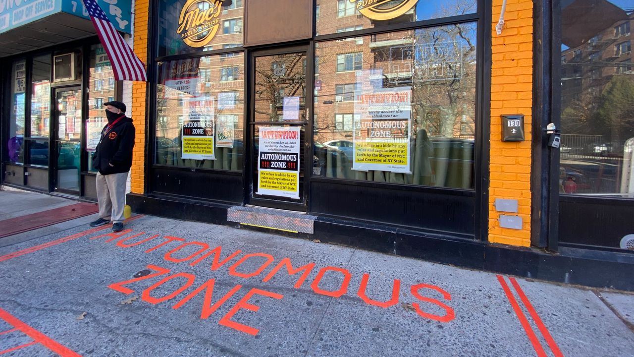 Staten Island bar owner Keith McAlarney has declared what he calls an "autonomous zone" outside his bar, Mac's Public House.