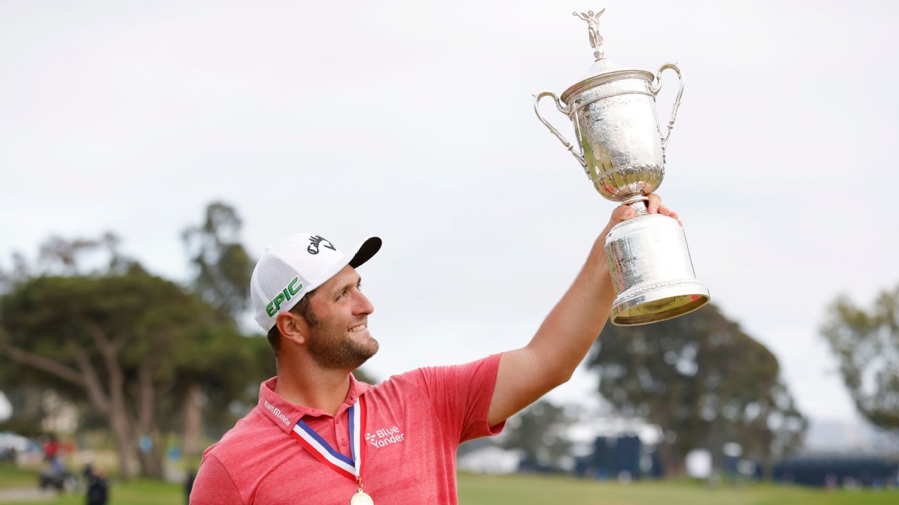 Jon Rahm continues U.S. Open celebration by drinking from the trophy and blasting 'We Are The Champions' - ESPN